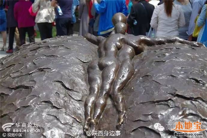 如果不親眼所見(jiàn),可能大多數(shù)人都無(wú)法想象,網(wǎng)友認(rèn)為尺度過(guò)大的愛(ài)情雕塑到底什么樣子。記者看到,緊鄰寒窯遺址公園售票處,一片葉子造型的雕塑前,有不少年輕游客在排隊(duì)等待合影。而這尊雕像是一片葉子上,兩個(gè)人全裸的造型相擁在一起,雕塑前的小牌子上寫著《重返伊甸園》,整個(gè)以青銅制作的雕塑,樹葉代表著永生和源泉,而樹葉中的一對(duì)男女則象征著永恒的愛(ài)情,賦予了其美好、微妙、永恒的愛(ài)情主題。